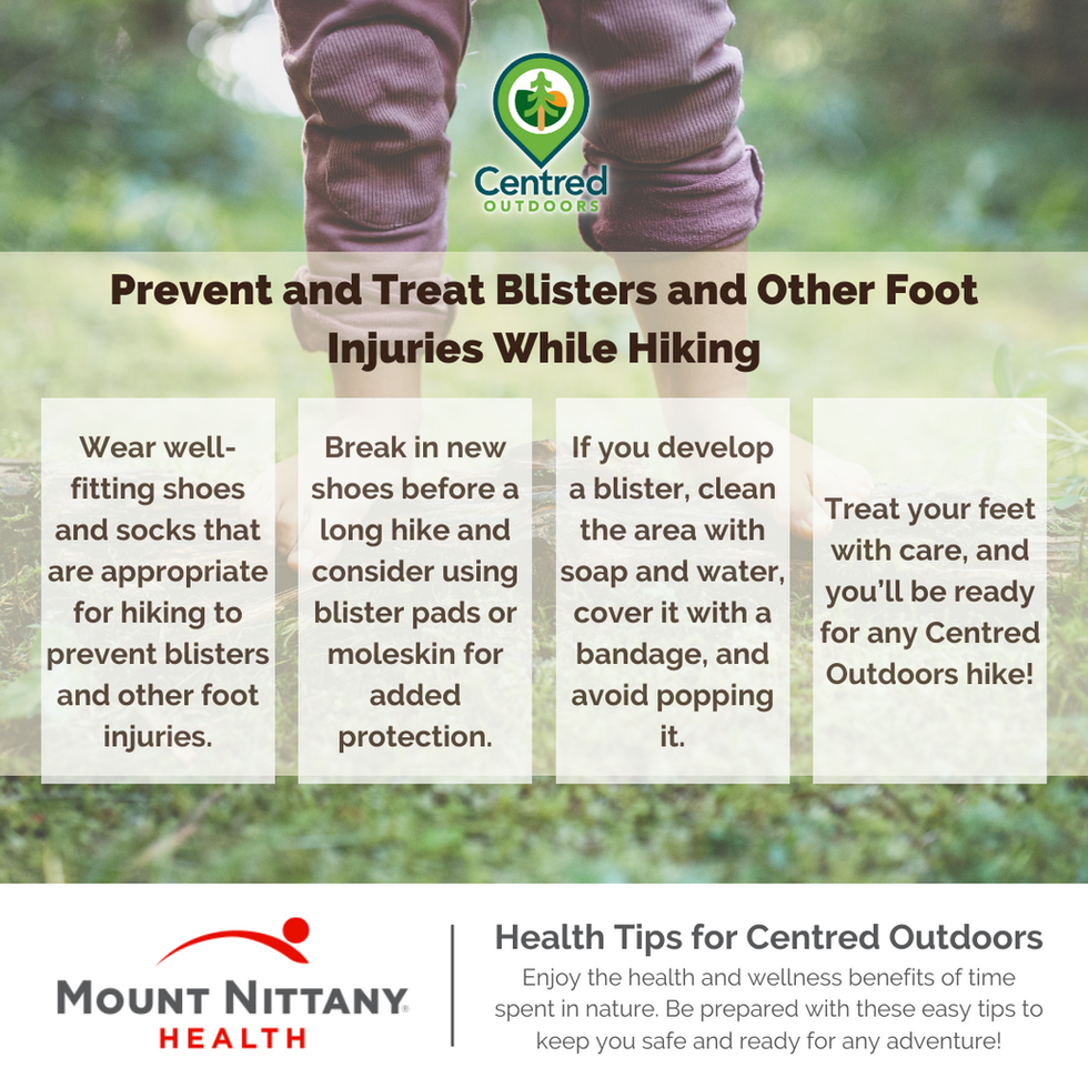 Visit the Mount Nittany Health Wellness Library for more healthy ways to enjoy the outdoors. Consider these Health Tips and be prepared for any Centred Outdoors outing!